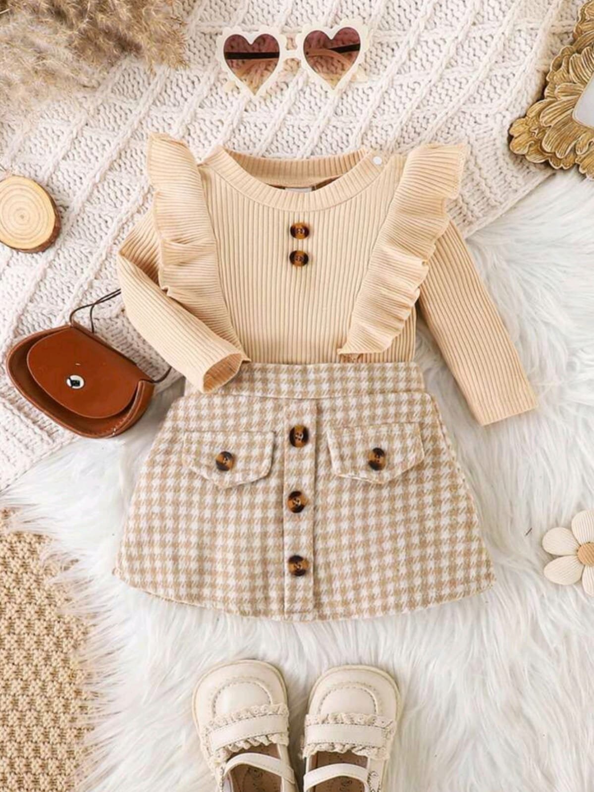 2 Piece Girls Winter Dress Set – Skirt & Top Outfit