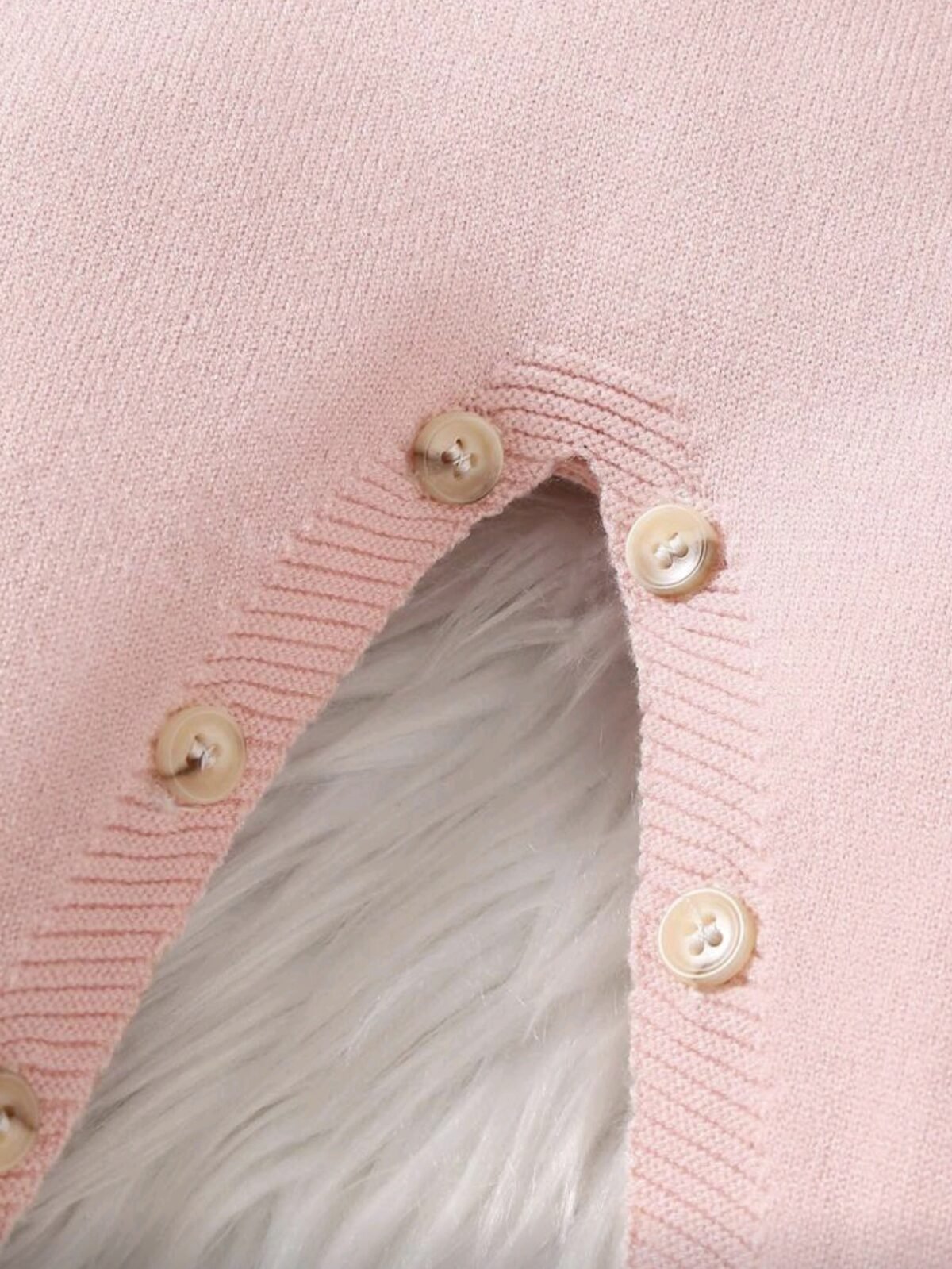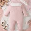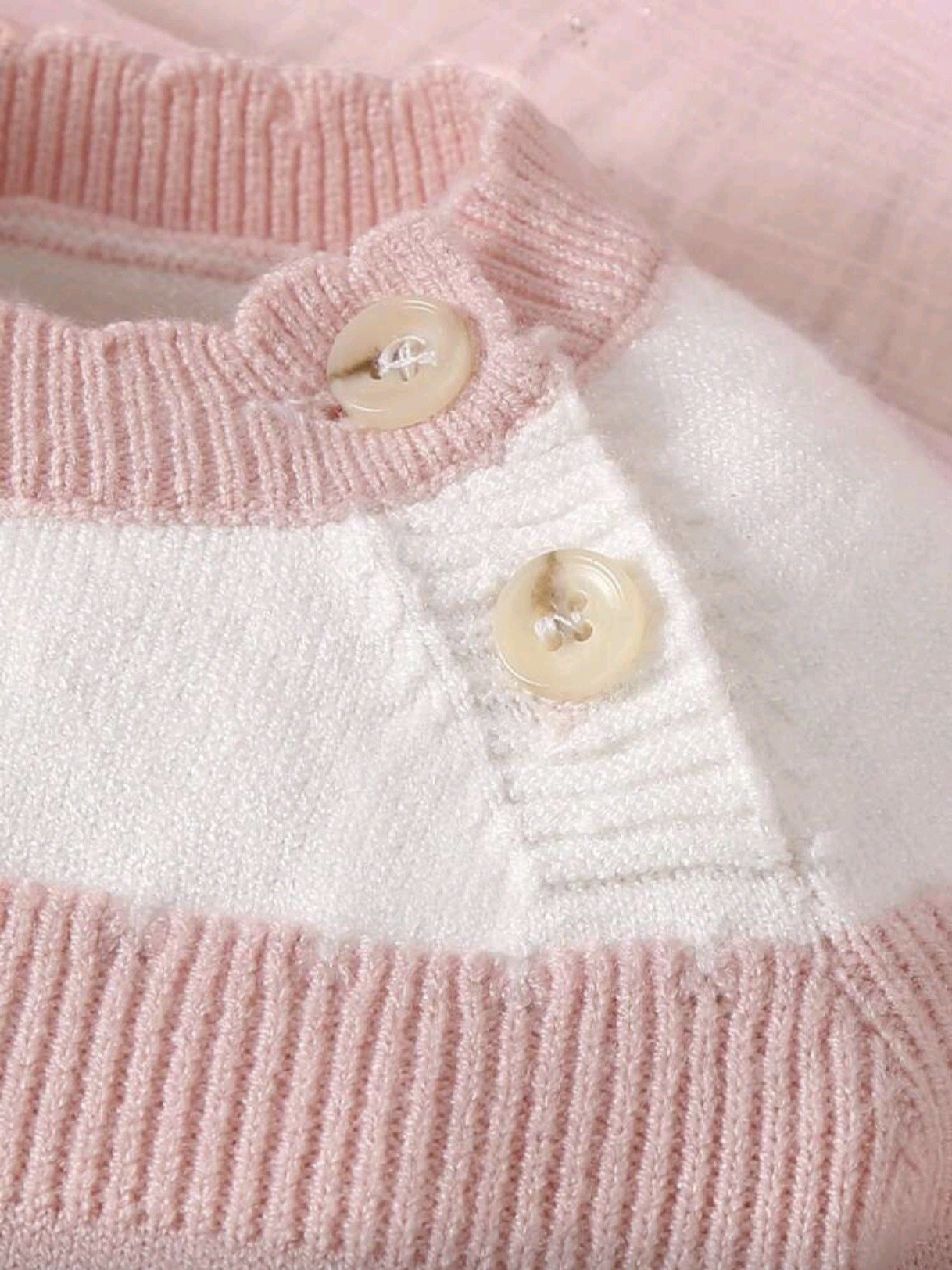 2pcs Baby Girl Set – Pink Floral Embroidered Sweater Jumpsuit & Hat