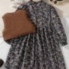 Charming outfit set featuring a floral dress paired with a cozy knit vest — a cute rural-retro style perfect for autumn/winter, holidays, travel, and everyday wear.