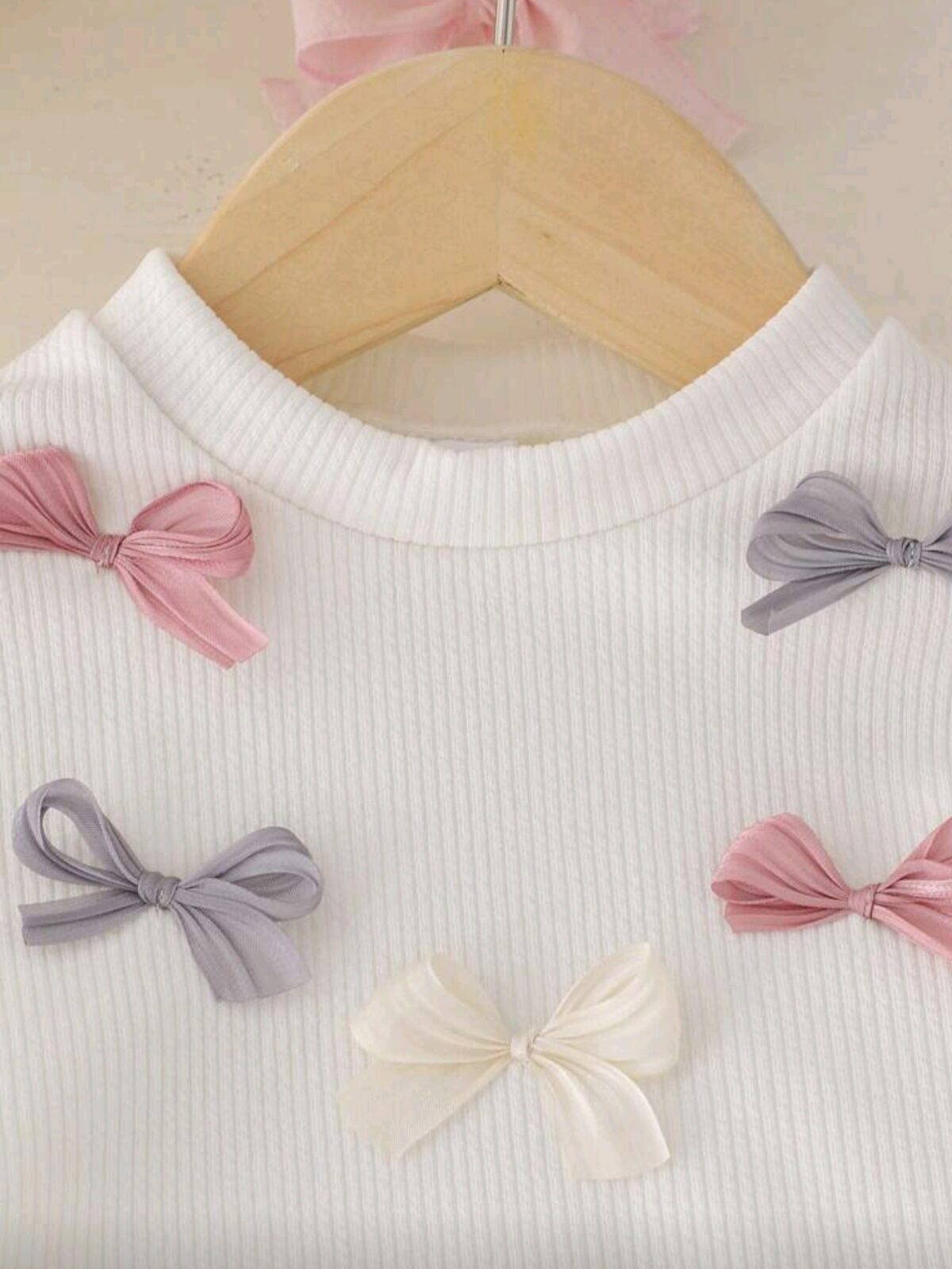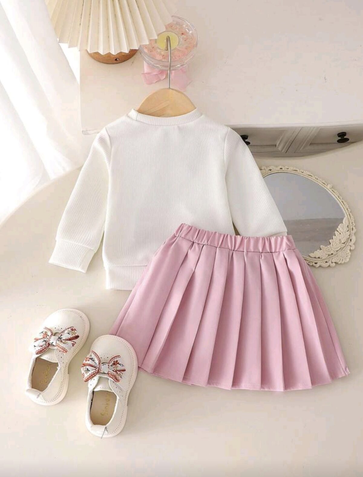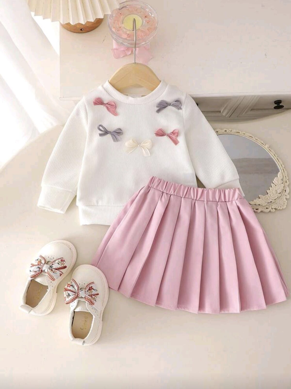 2pcs Toddler Girl Set – Bow Long Sleeve Top & Skirt Outfit