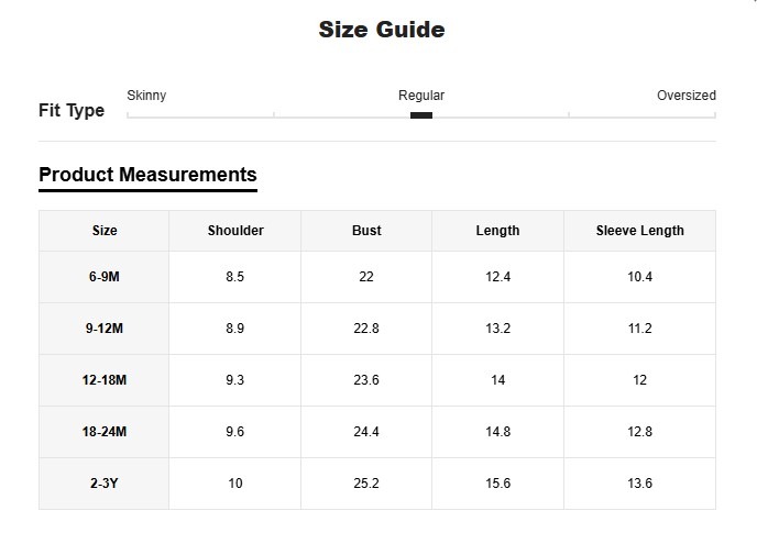 | size | 6-9M, 9-12M, 12-18M, 18-24M, 2-3Y |
