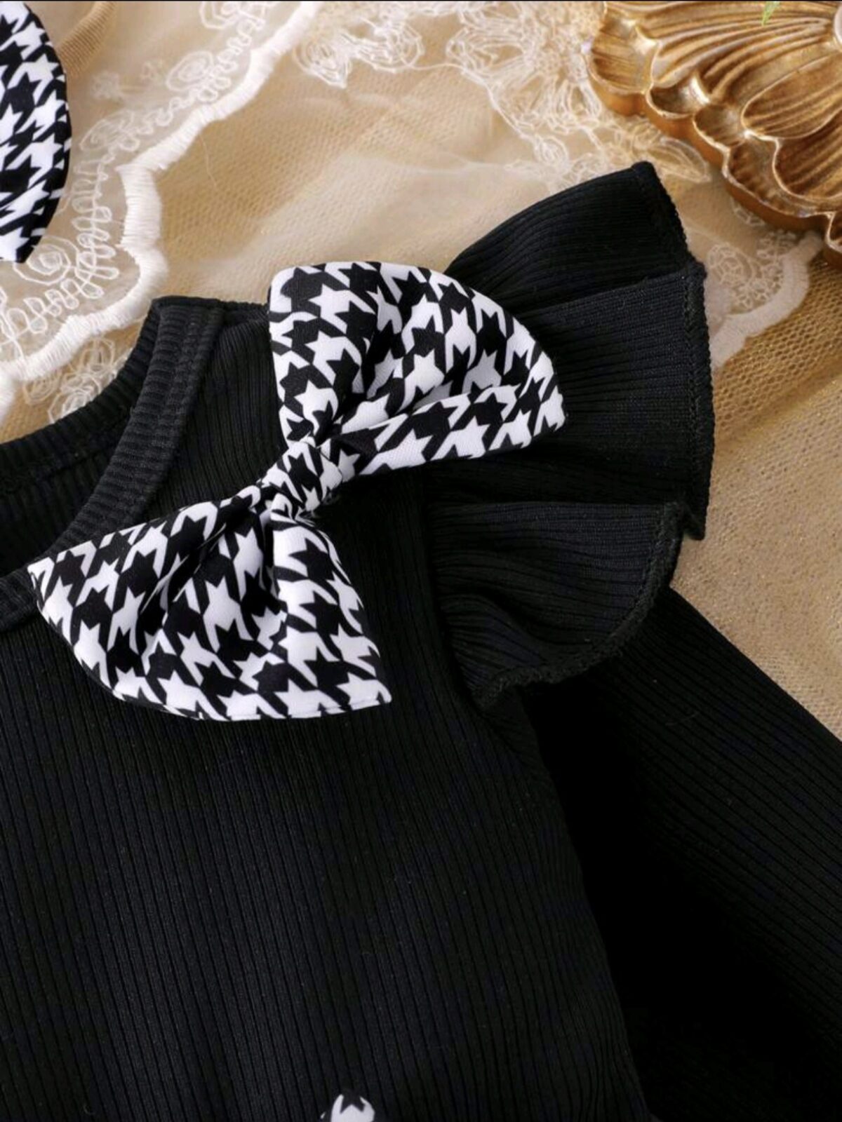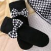 3pcs Baby Girl Houndstooth Dress Set – Jumbo Bow, Socks & Hair Tie