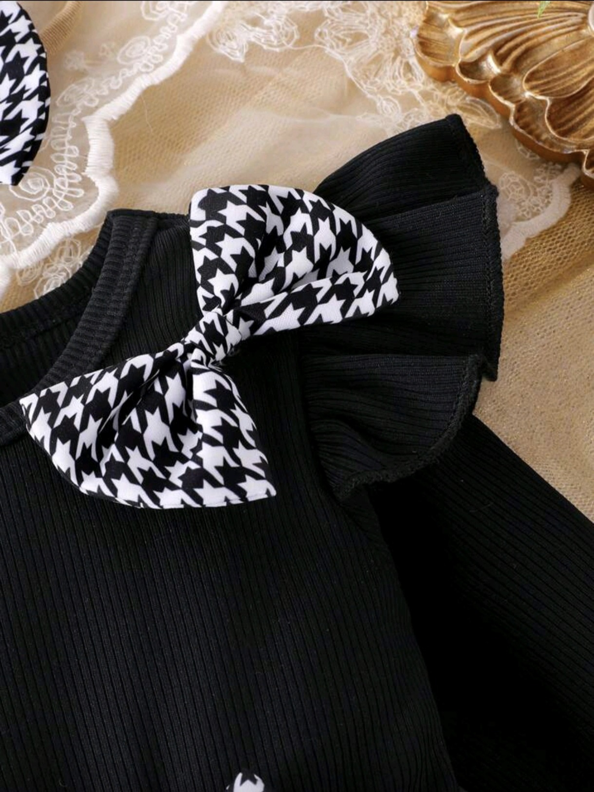 2 reviews for 3pcs Baby Girl Houndstooth Dress Set – Jumbo Bow, Socks & Hair Tie