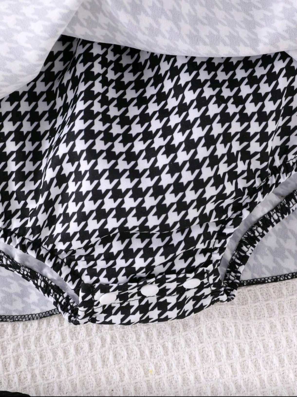 3pcs Baby Girl Houndstooth Dress Set – Jumbo Bow, Socks & Hair Tie 3pcs Baby Girl Houndstooth Dre...