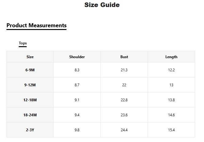 | size | 6-9M, 9-12M, 12-18M, 18-24M, 2-3Y |