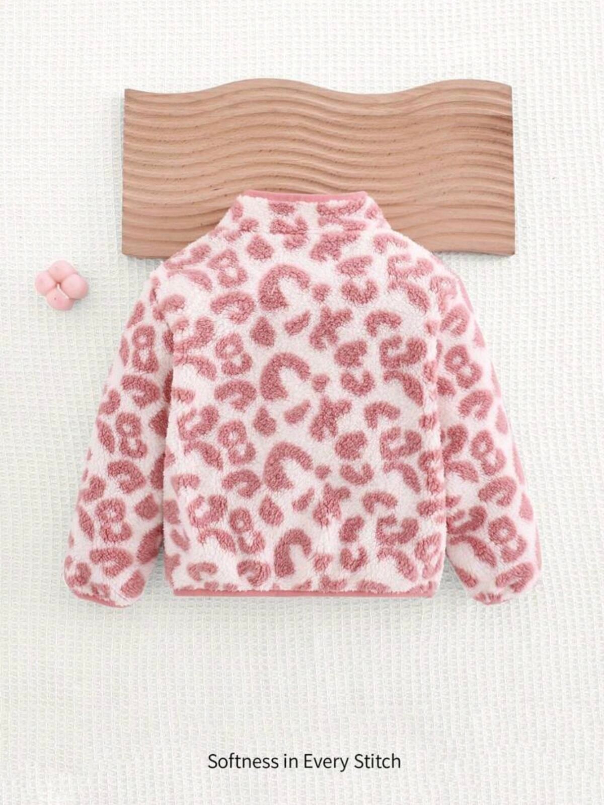 Baby Girl Floral Cardigan – White Stand Collar Winter Sweater