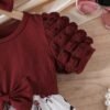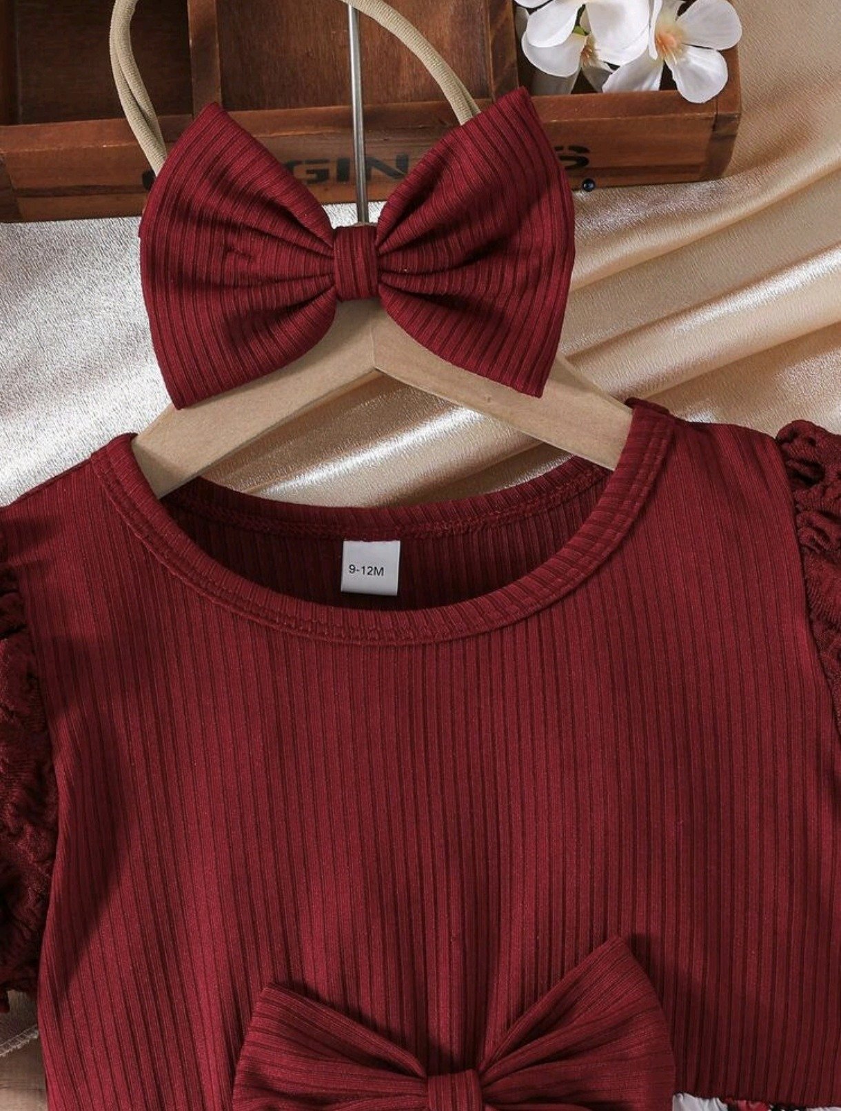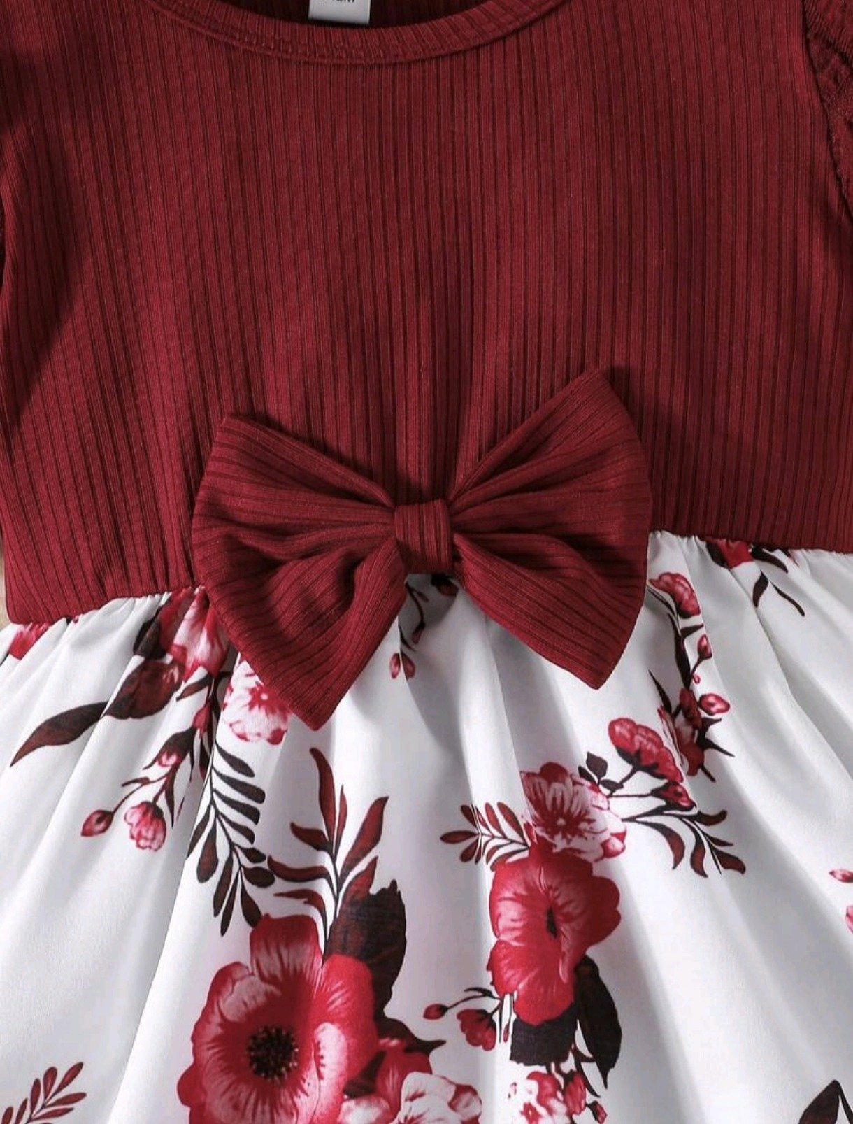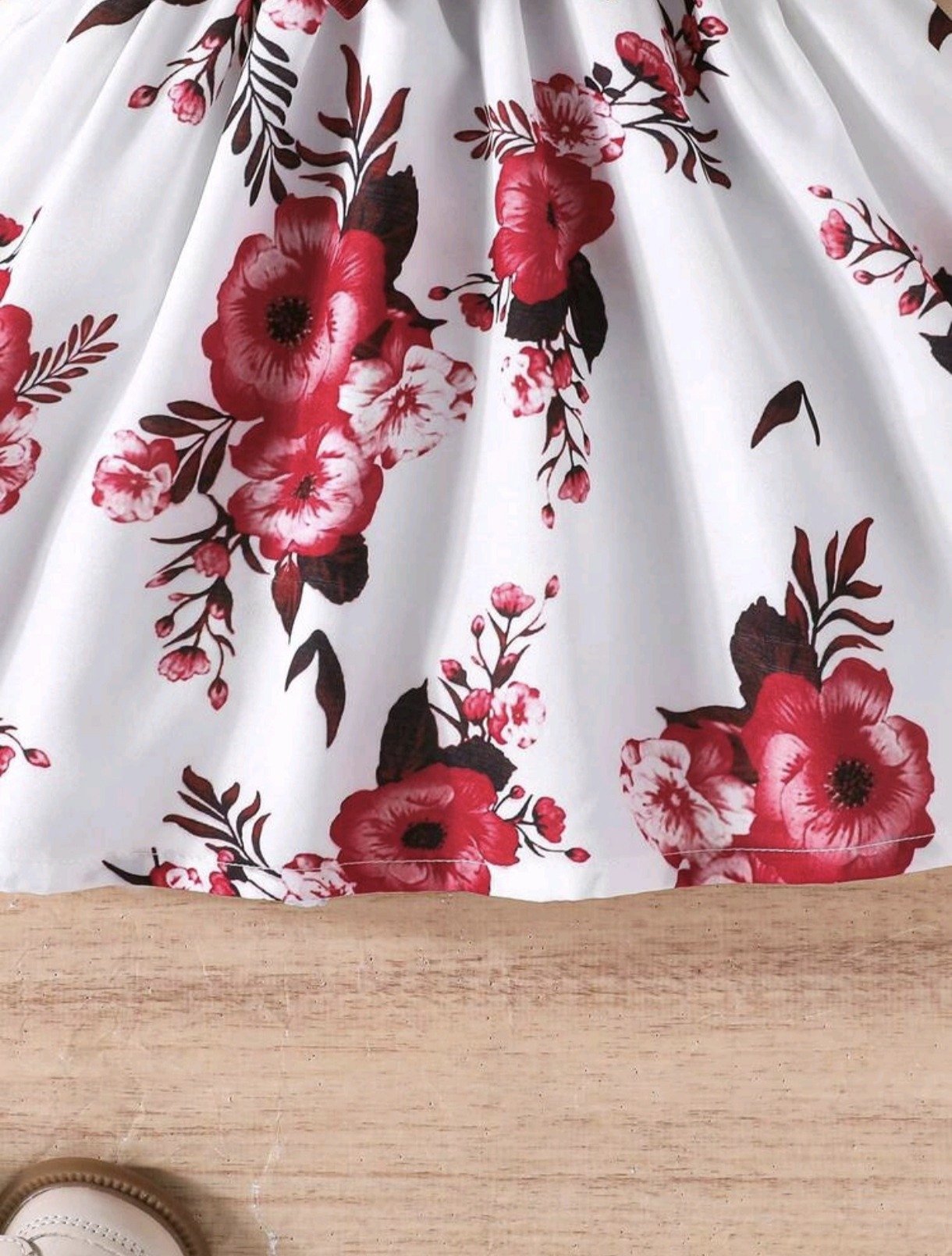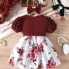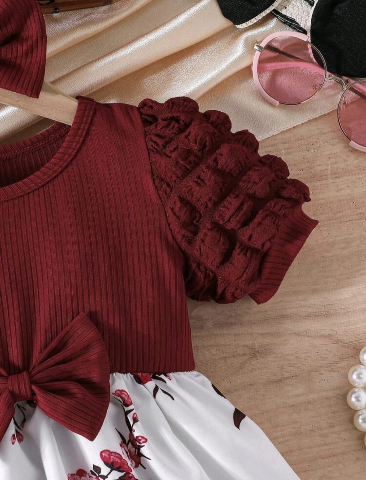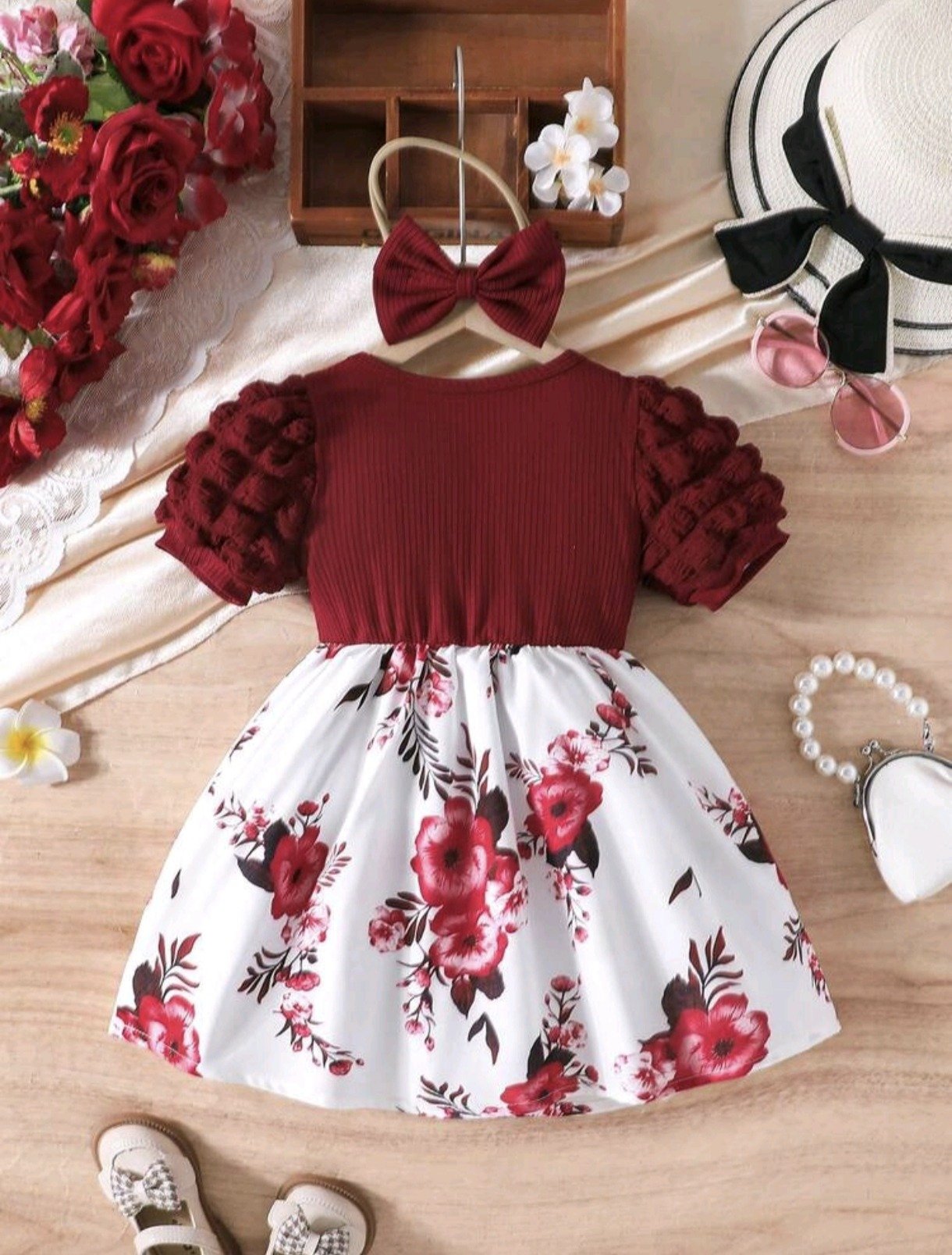 Elegant floral dress with puff sleeves and tiered ruffles, paired with a matching bow headband — perfect for everyday wear and special outings.