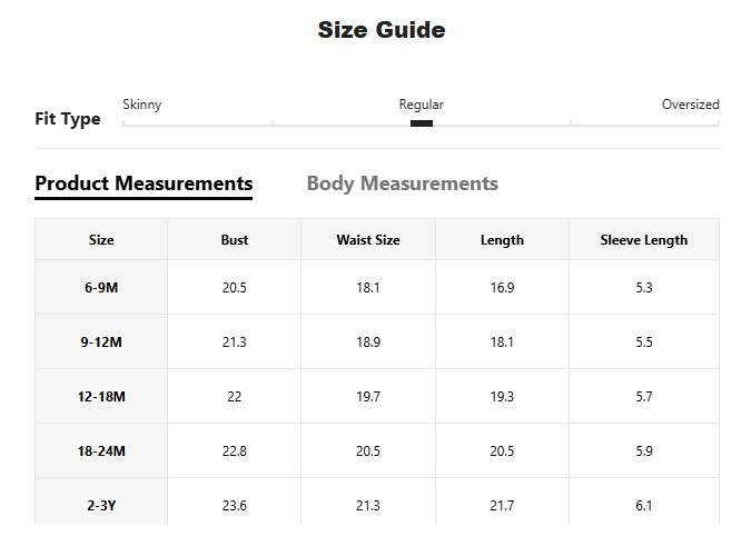 | size | 6-9M, 9-12M, 12-18M, 18-24M, 2-3Y |
