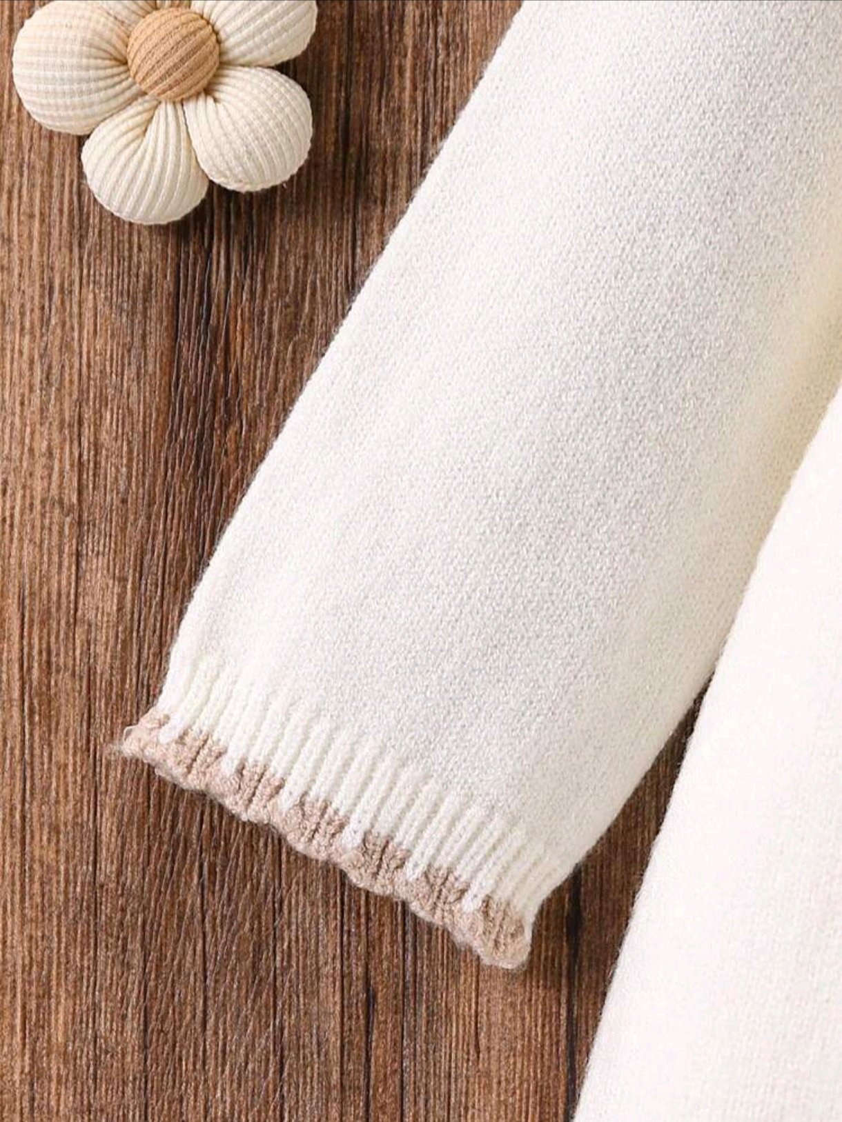 Cozy knitted dress with ruffle collar and lantern sleeves, perfect for baby girls’ casual wear in autumn and winter.