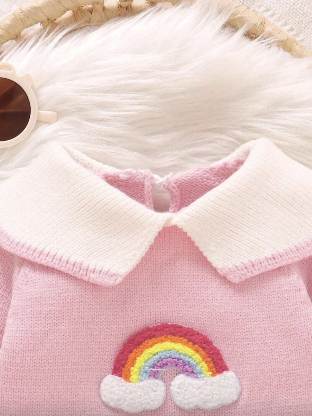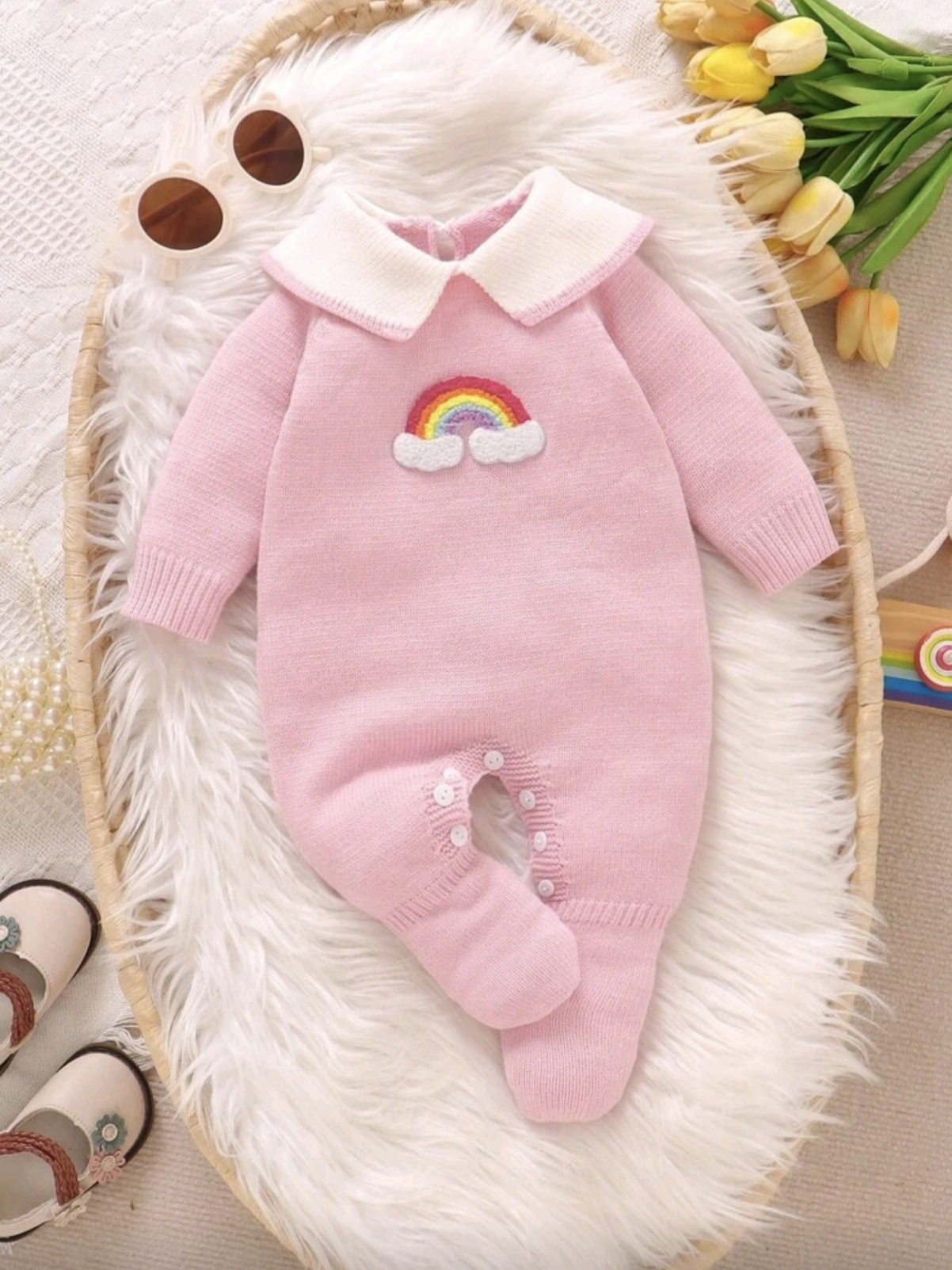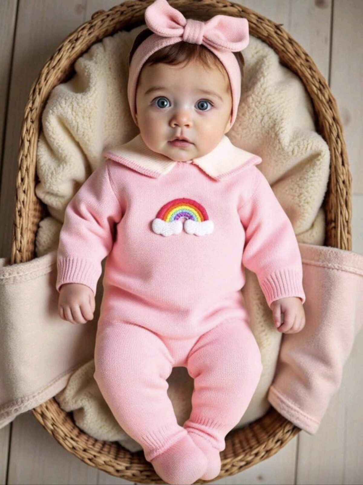 Baby Girl Pink Knit Jumpsuit – Rainbow Cloud Sweater Outfit