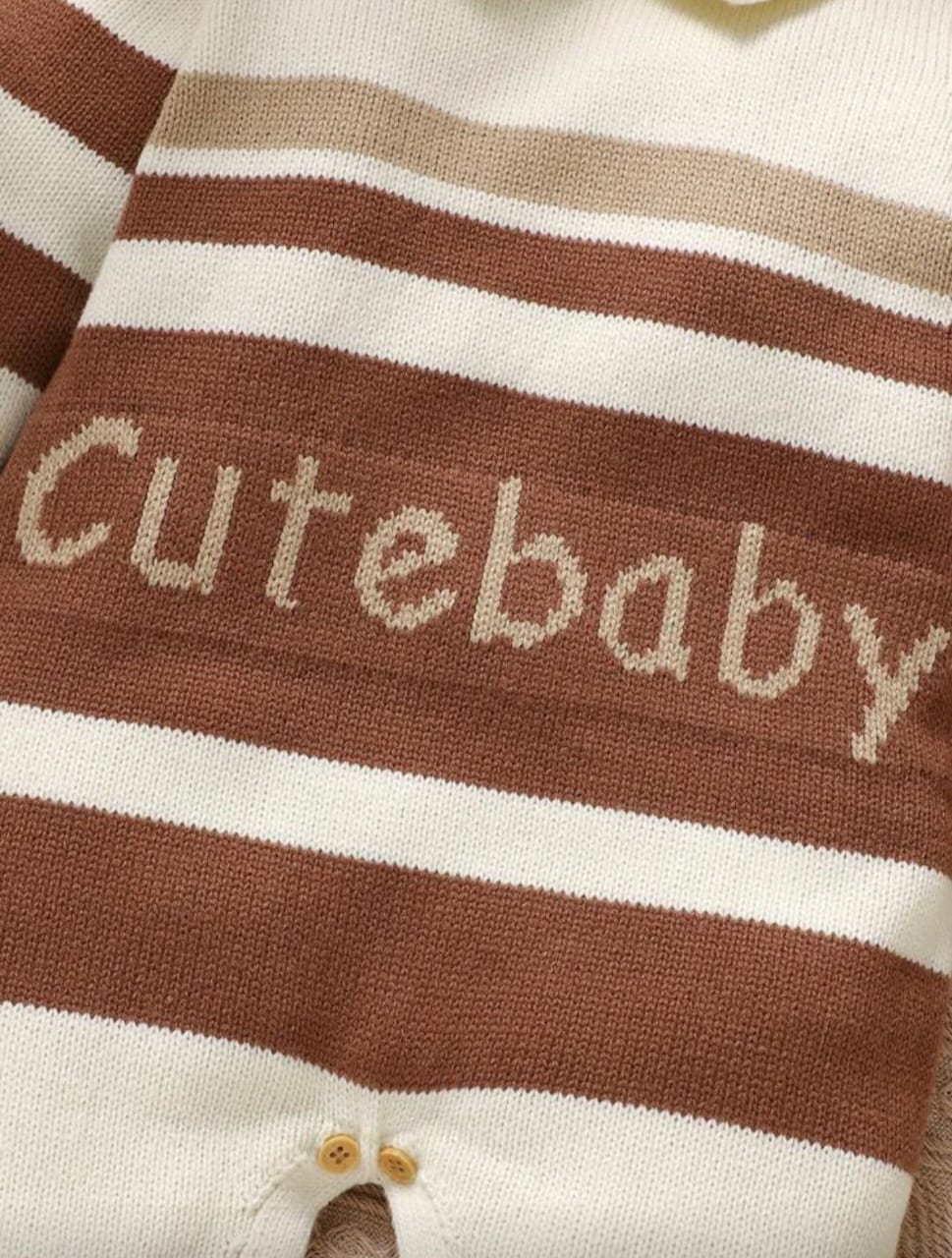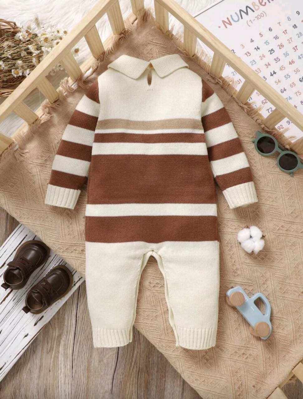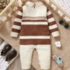 Baby One Piece Knit Jumpsuit – Soft Striped Crawling Suit