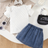 Be the first to review “Chic Summer Outfit for Girls – White Top & Navy Bow Skirt”