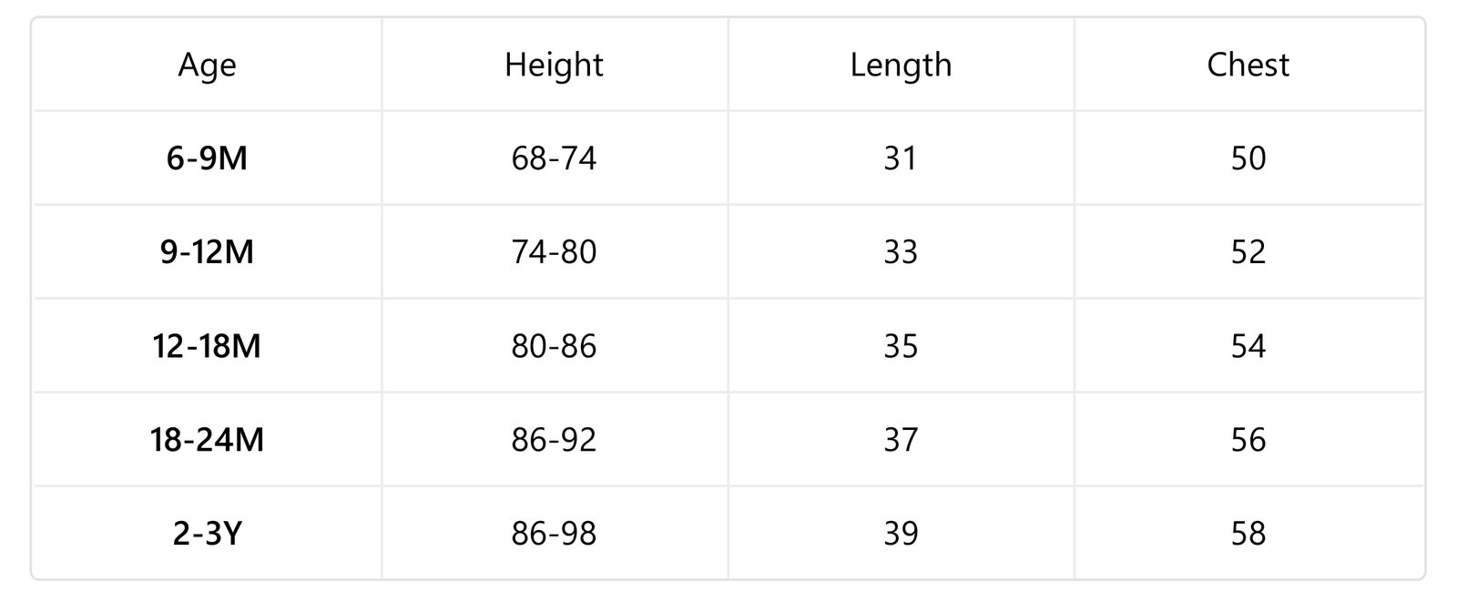 6-9M, 9-12M, 12-18M, 18-24M, 2-3Y