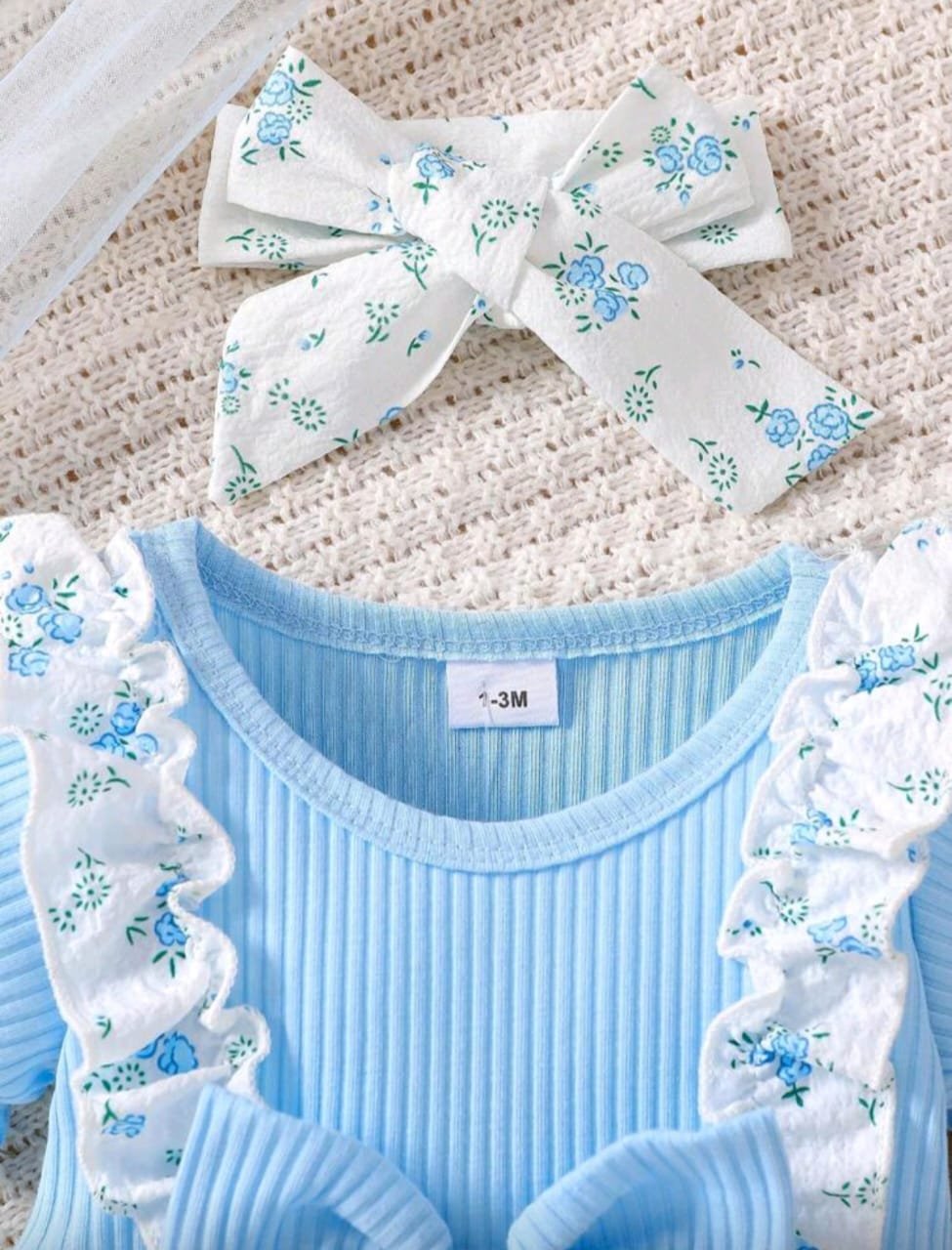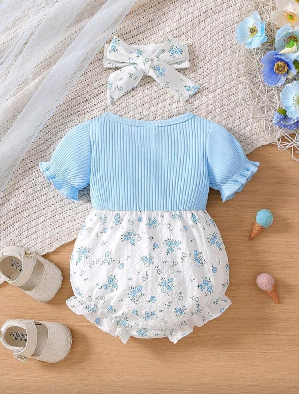Cute Baby Girl Summer Outfit – Ditsy Floral Bodysuit & Headband