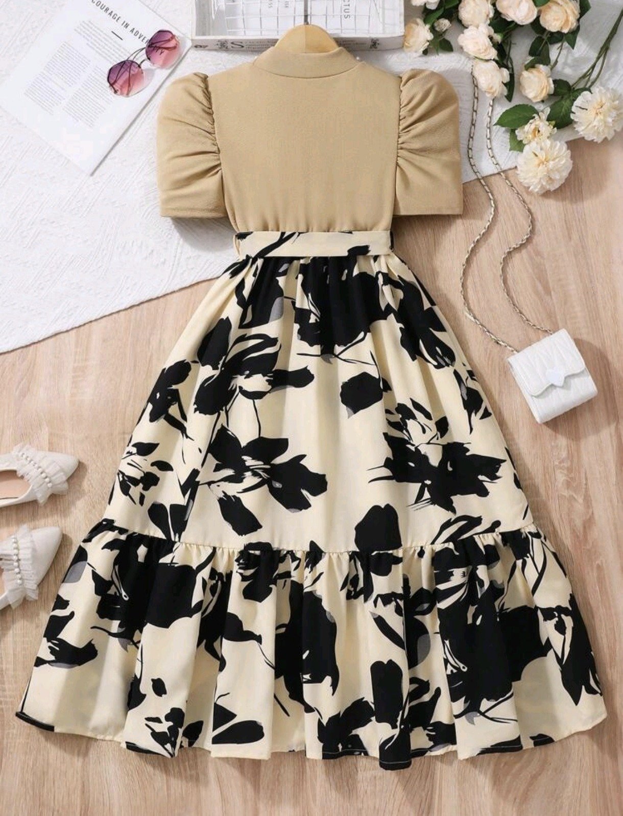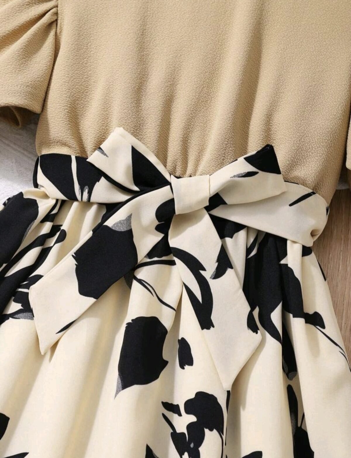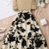 Girls Casual Long Dress – Printed Cinched Waist Daily Wear