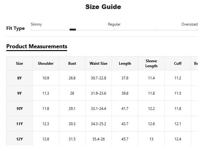 | size | 10Y, 11Y, 12Y, 8Y, 9Y |