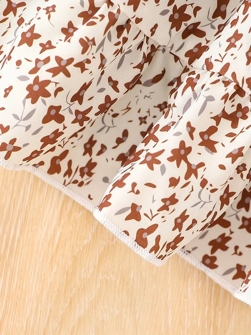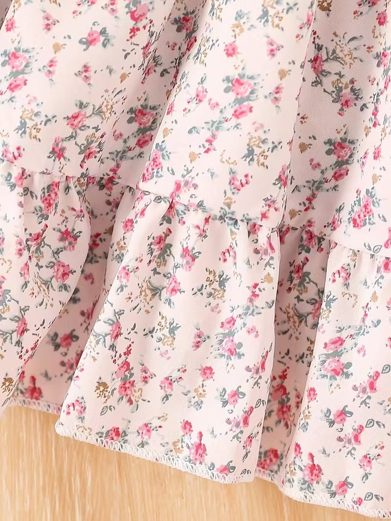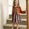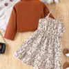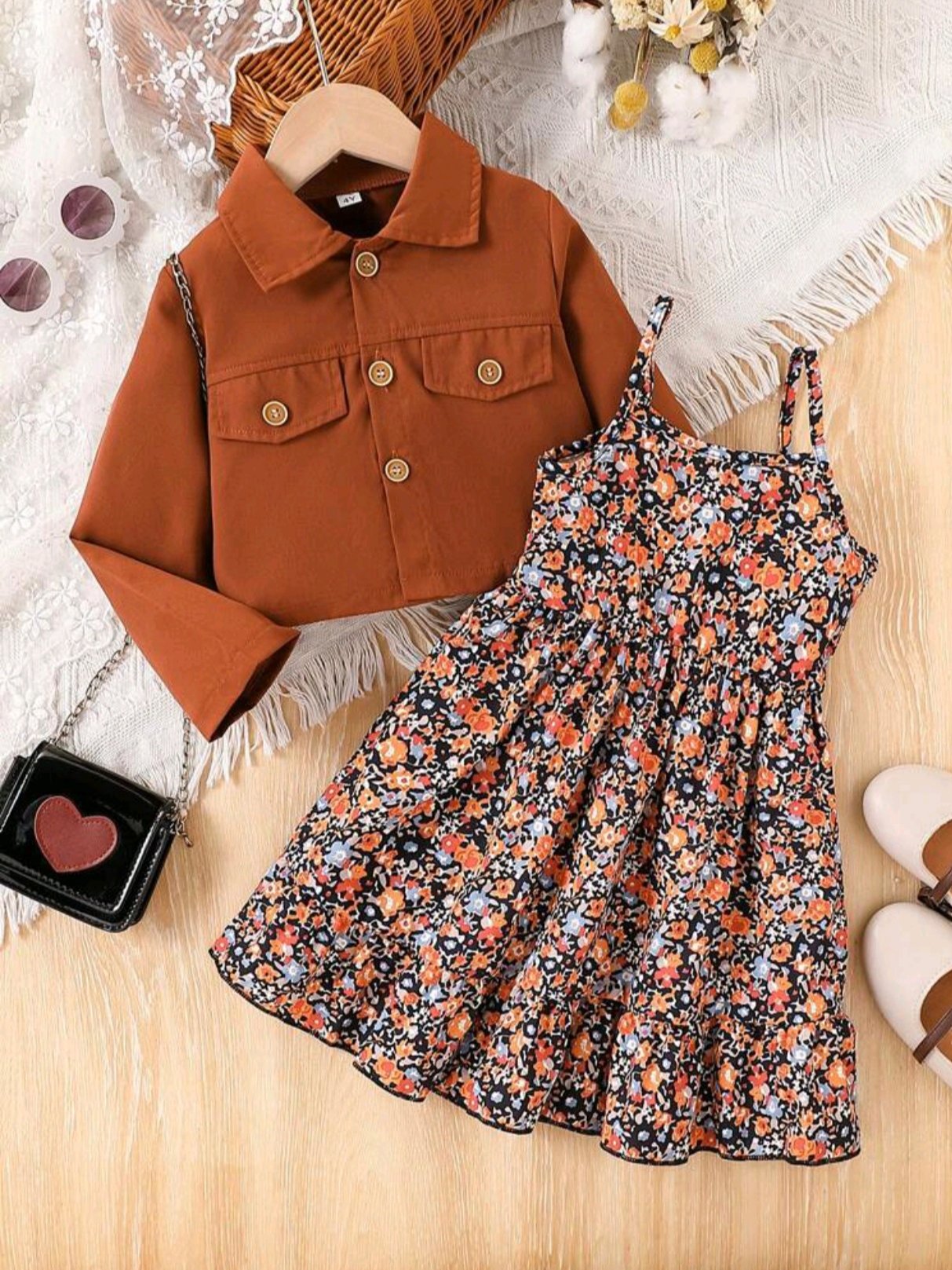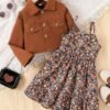 Girls Floral Dress and Jacket Set – Stylish 2-piece outfit with a solid long-sleeve short jacket and floral print dress, perfect for spring/summer outdoor wear, vacations, and parties.