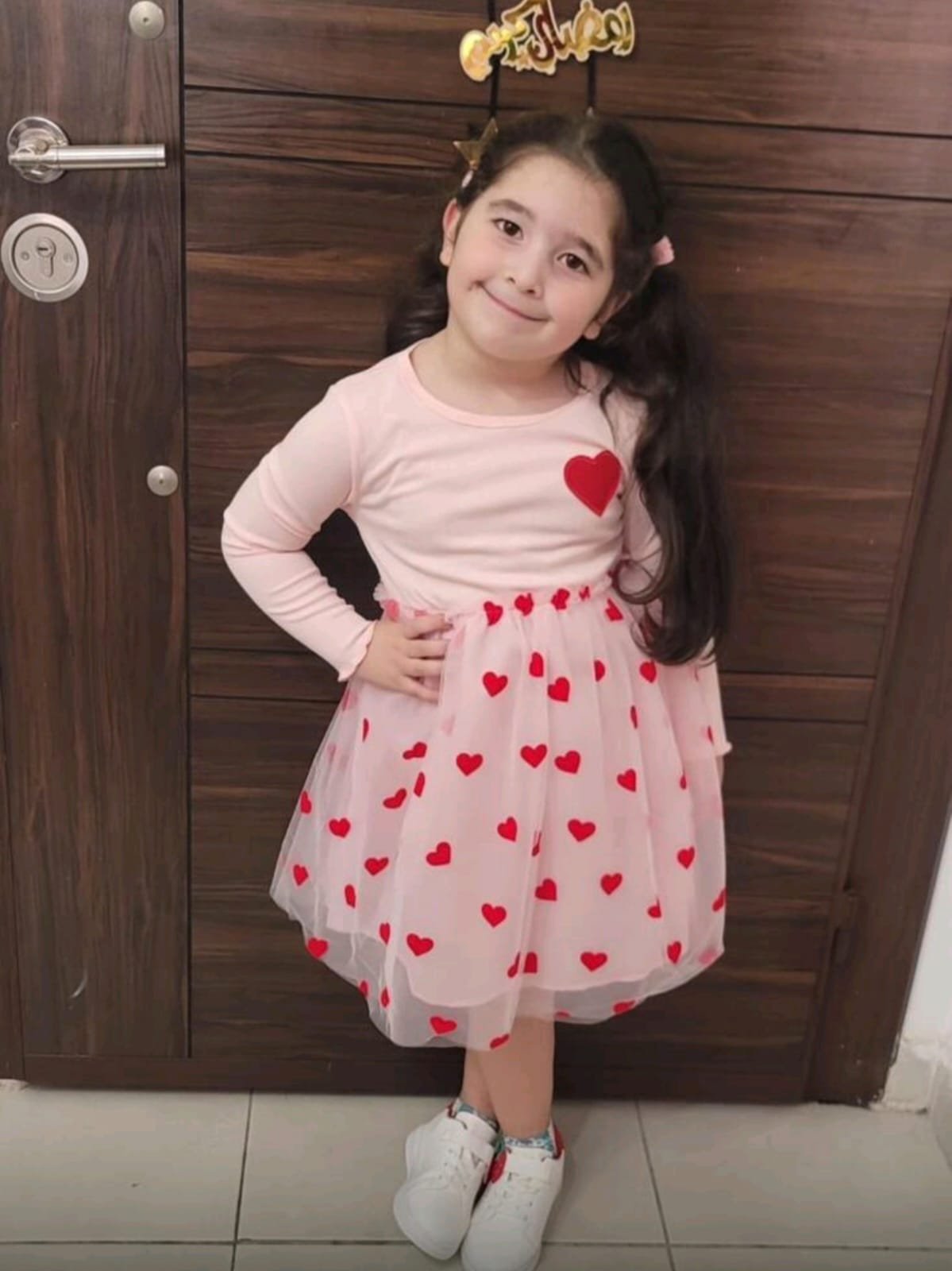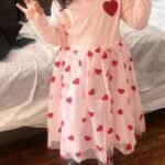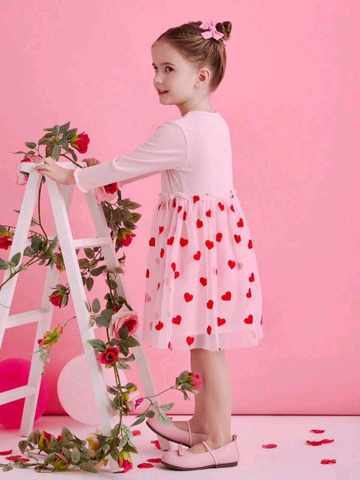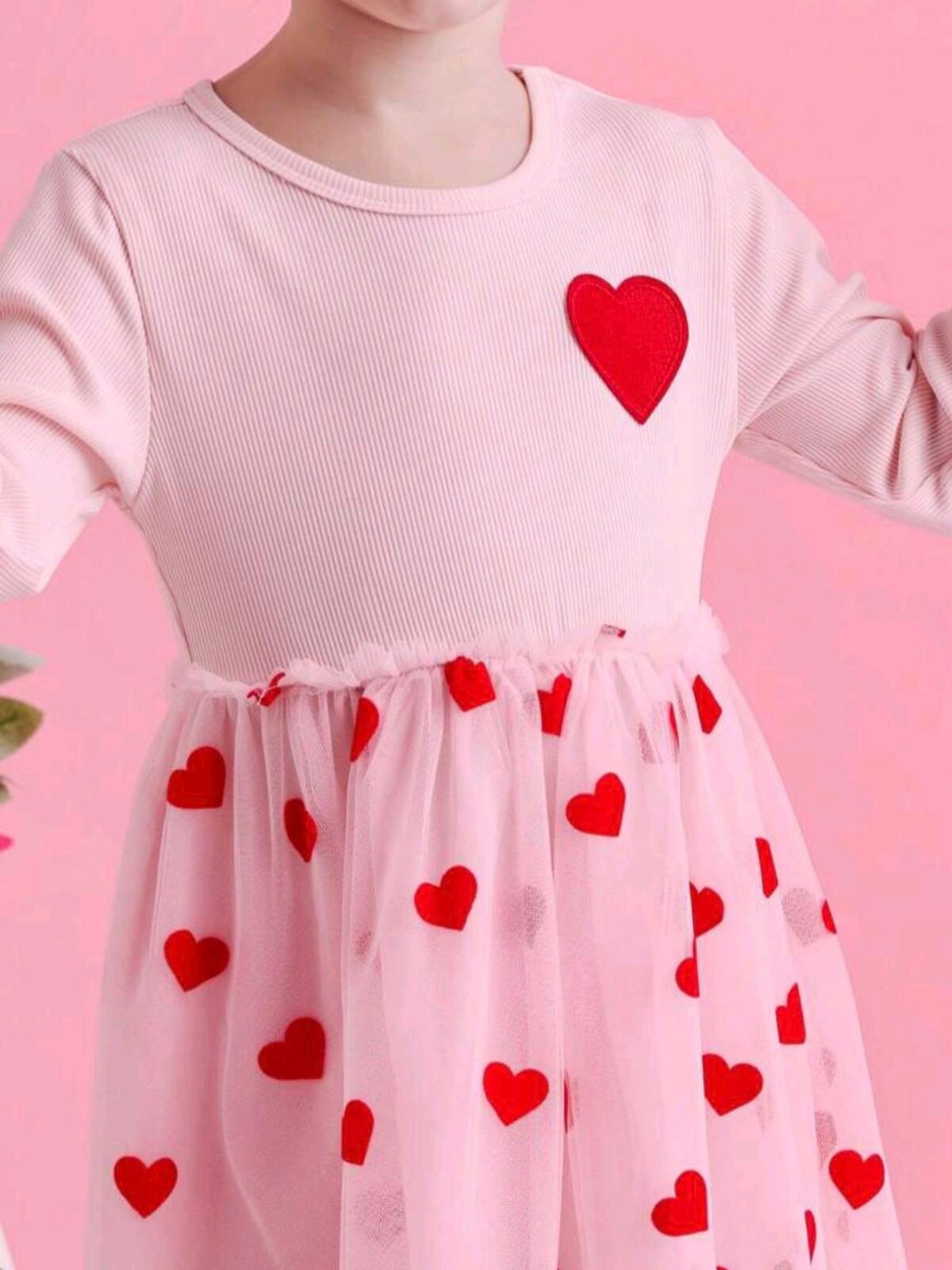Charming tulle dress with heart embroidery, perfect for parties, holidays, and everyday wear in spring and autumn.