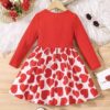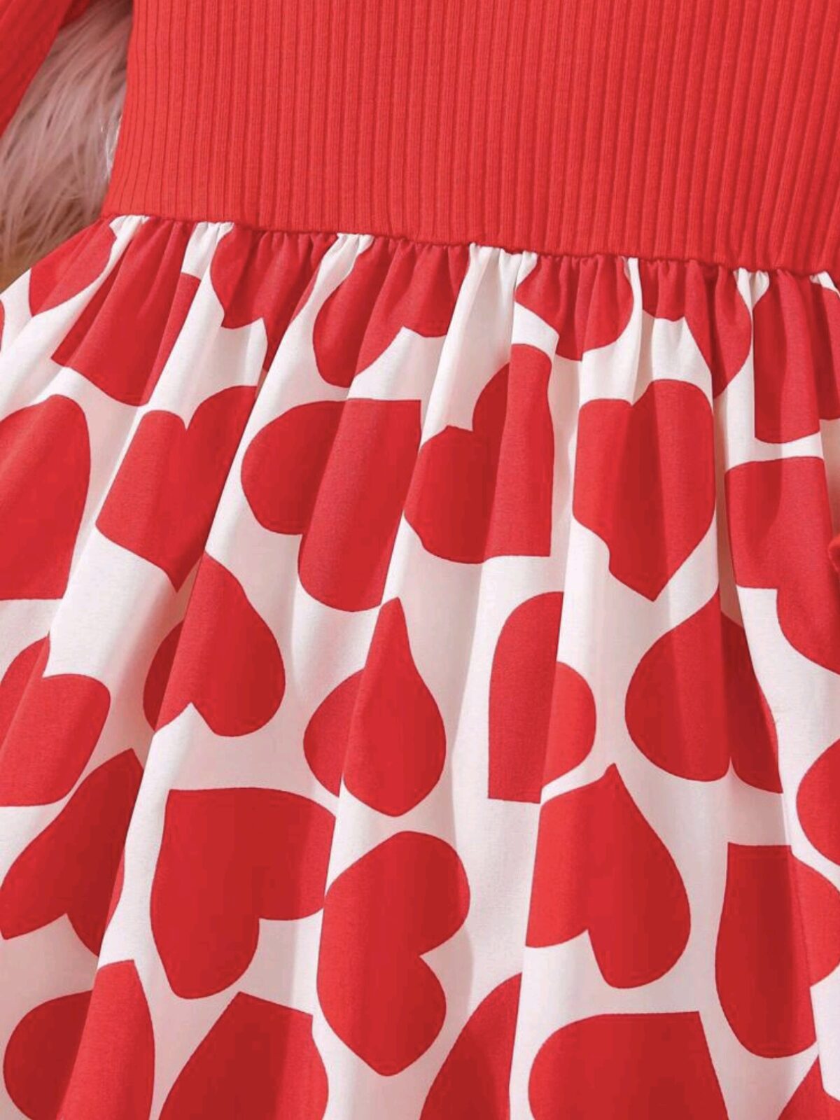 Girls Heart Print Knit Dress – Patchwork Style for Spring/Autumn