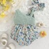 Newborn Baby Girl Floral Bodysuit – Strap Outfit with Bow & Headband